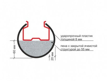 Демпфер в виде защитного кожуха изготовлен из упругого и ударопрочного пластика толщиной 8 мм. Его форма компенсирует удары по стойке.